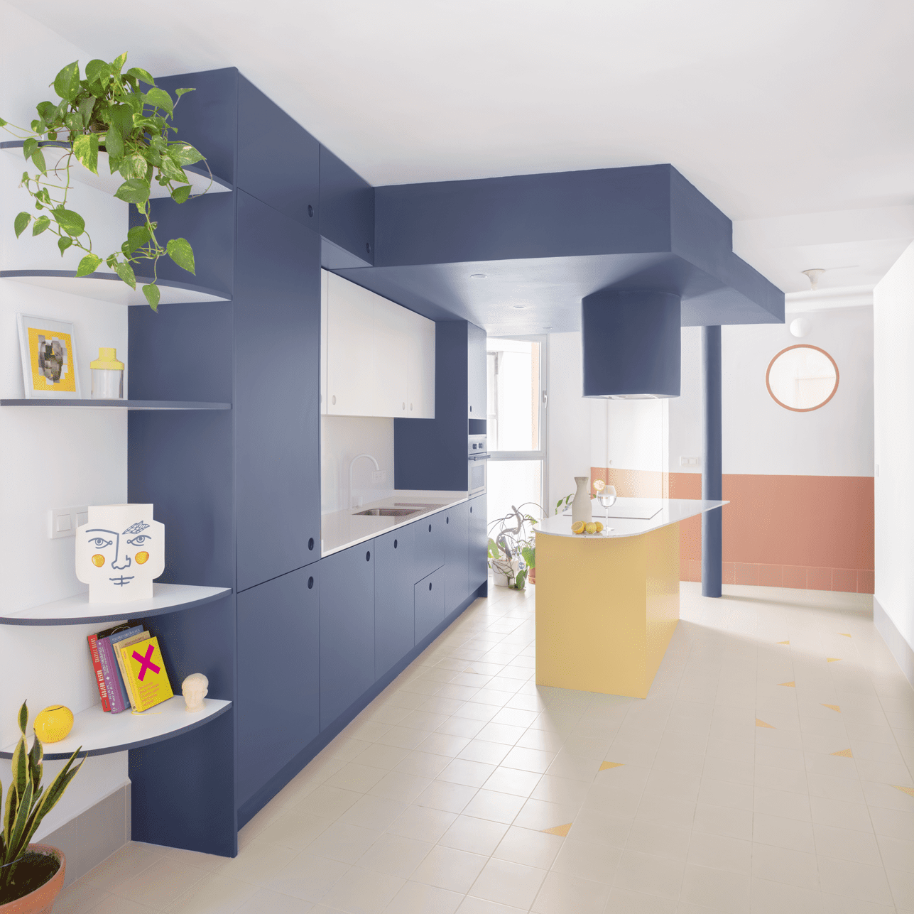 Así, en el proyecto, el recurso del color se convierte en lo más importante de la intervención con la finalidad de encontrar para su propietario un hogar en el que poder colocar todos sus enseres de manera cómoda y recibir a amigos y familia en una casa más afín a él de lo que antes era.