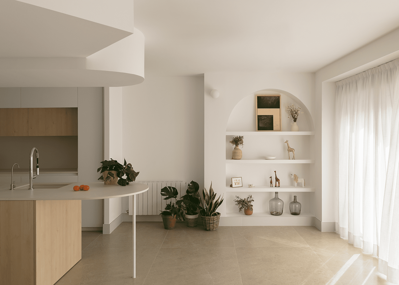 En muchos pueblos existe la costumbre de construir un edificio pensando en el futuro de la familia a modo de construcción “perfectible” en la que los padres o los abuelos dejan conformado un esqueleto estructural y una envolvente a la espera de que en el futuro los hijos o nietos la habiten según sus necesidades. Así es como nos encontramos esta vivienda del segundo piso de un edificio en la Plaça Major de Betxí que nunca antes había estado habitada.