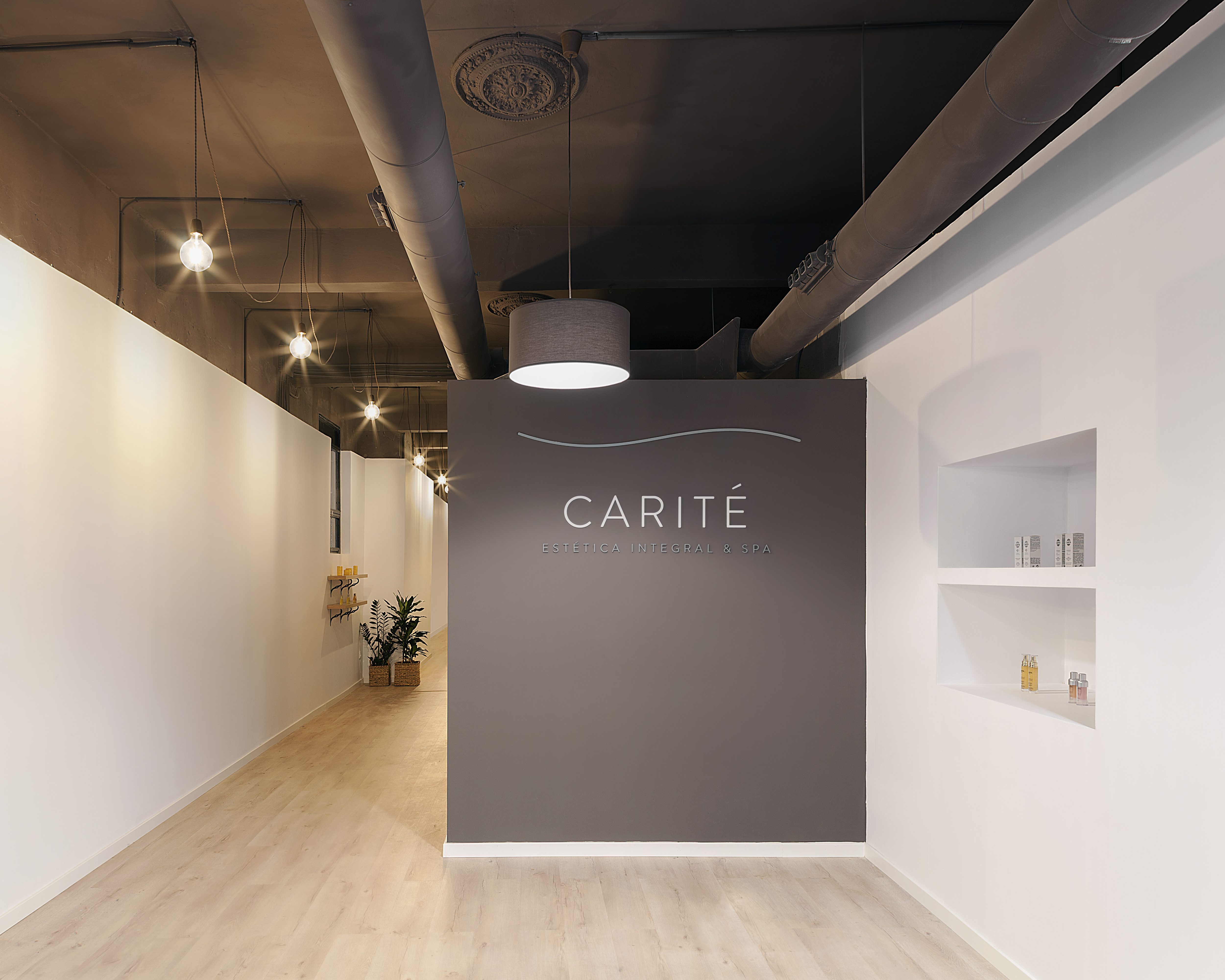 Carité es un espacio de bienestar en el que estar bien, pasarlo bien. Tranquilo, refinado y sin estridencias, quiere ser un lugar en el que los clientes solamente se concentren en su propio bienestar, en su propio equilibrio. La clínica Carité es un espacio distante pero a la vez acogedor, un salón frío donde el protagonismo lo tendrán los productos que se van a vender y utilizar, así como las personas que en él se van a mover y relacionar. Todos ellos serán los responsables de transmitir el calor y el color que un salón de belleza requiere.